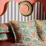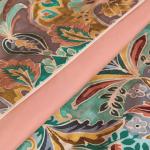 L’ornemental s’émancipe en adoptant une écriture aux courbes aquarellées diffuses. Une nouvelle esthétique qui s’inspire du passé, sublimée par une palette estivale chaleureuse et un satin cuivre à l’éclat raffiné.