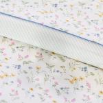 Un esprit de vacances souffle sur cet imprimé mille-fleurs, distillant une ambiance estivale joyeuse. Le revers se pare d’un pois façon plumetis bleu délicat, souligné d’un passepoil bleu roi qui twiste l’ensemble avec audace.